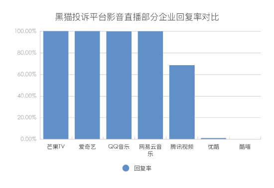 黑猫投诉影音直播领域投诉数据对比:优酷酷喵回复率不足1%