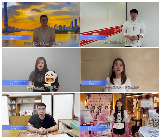 会上,来自淘宝直播、京东、快手、得物的互联网电商平台代表以及来自遥望科技、嘉星集团的MCN机构代表通过录制视频为2024未来电商节送上了祝福寄语。