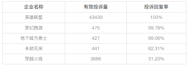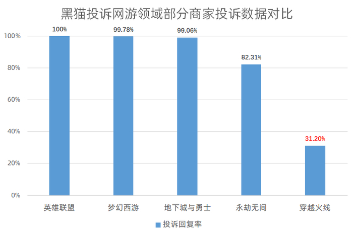 黑猫投诉网游领域投诉数据对比:穿越火线回复率仅3成