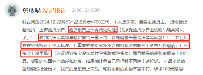 关键词:闲鱼验货宝验货报告与实际不符