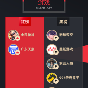 黑榜:恋与深空、优酷、叠纸游戏、微信、腾讯公司、酷喵、网易第五人格、极光影票、来疯直播、996传奇盒子