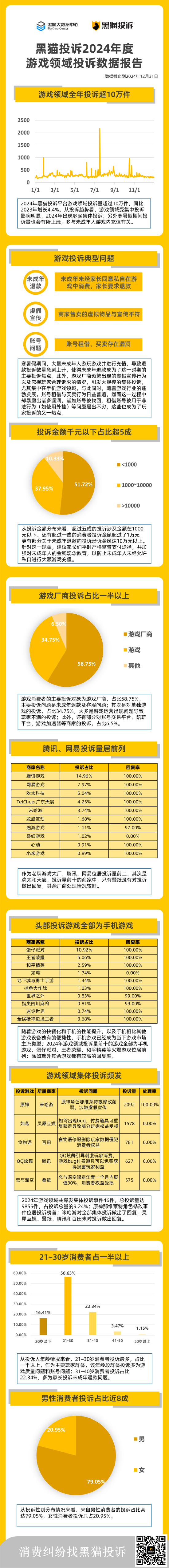 黑猫投诉2024年游戏投诉数据报告:全年投诉超10万件 游戏集体投诉频发