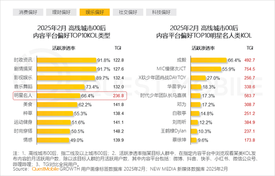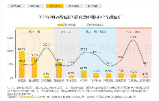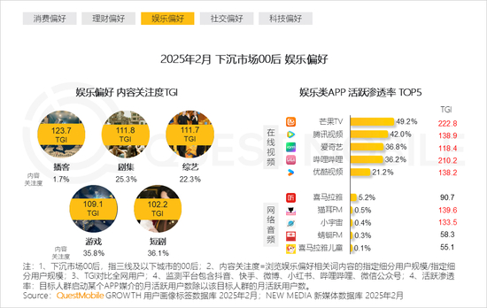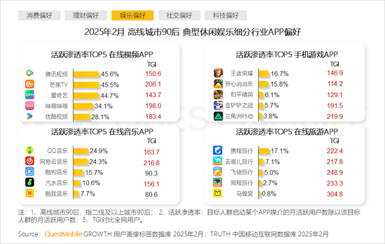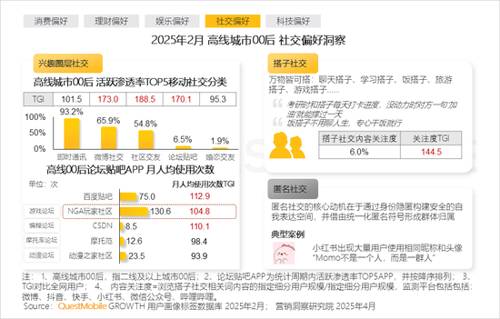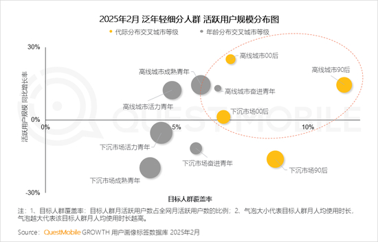 本报告泛年轻人群指00后、90后人群,泛年轻细分人群按代际分布交叉城市等级,典型细分人群选择2025年2月月活跃用户规模TOP3,即高线城市00后、下沉市场00后、高线城市90后