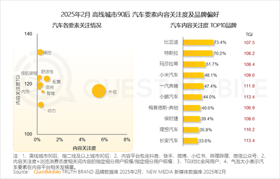 汽车消费中,高线城市90后的需求也从“功能推销”转变为“圈层共情”,“社交货币”感知度成为关键,比亚迪特斯拉位居内容关注度前两位……