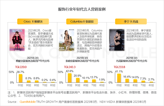 2、高线城市00后用穿搭表达个性,偏好“松弛感+功能潮酷”,品牌通过年轻代言人等方式重构年轻市场认知
