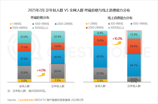 泛年轻人群终端设备价格偏低,但网上消费能力更强