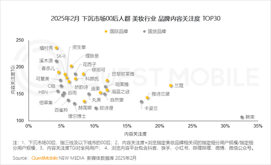言归正传,今天就给大家分享一下泛年轻人群营销洞察。QuestMobile数据显示,截止到2025年2月份,中国移动互联网00后与90后的泛年轻人群总量已经达到4.43亿,对照同比变化趋势来看,高线城市持续吸引更多下沉市场的年轻用户,占比达到了54.3%,同比增长了6.6%。