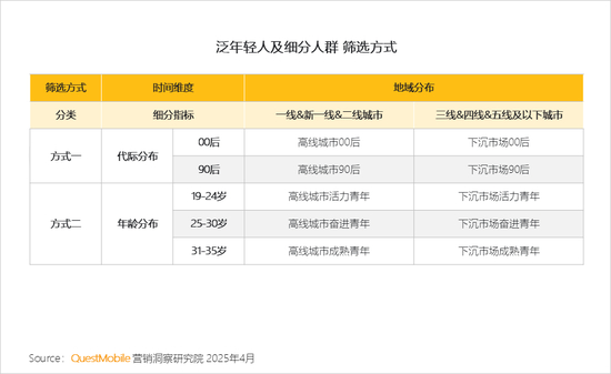 泛年轻人群可通过多种方式筛选,交叉维度可进一步下探细分人群特征
