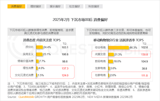 1、下沉市场00后活跃于二手平台与私域购物平台,同时追求“科技+效率的提效”“科技+暖意的陪伴”