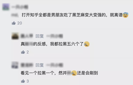 随后我们又点开了这些说黑芝麻帮男朋友变厉害的文章的留言区……