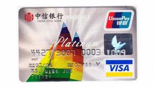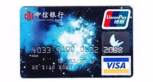 值得一提的是,并不是所有印有“新银联+老Visa”标识的银行卡存世量都少,如中信银行发行的“新银联+老Visa”版借记卡(图6)和信用卡(图7),发行量较大,存世量也多。