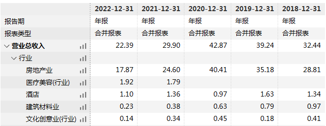 2022年,苏宁环球的医美板块仅实现营业收入1.93亿元,同比增长9.54%。在地产主业营收连续下滑的情况下,占总营收比仍仅有8.62%,未能成为第二业绩支撑。而包括酒店业务、建筑材料、文化创意产业等也持续疲软。