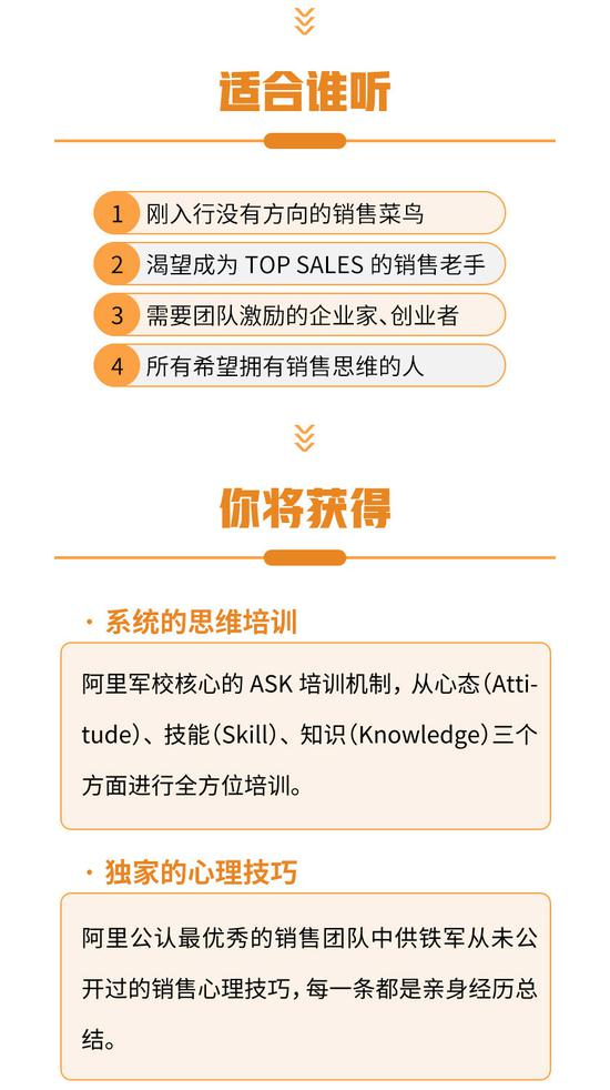 新浪理财大学音频课《阿里铁军内训销售课》,前阿里巴巴中供铁军李立恒从阿里销售三板斧说起,全面介绍ASK销售成长体系,将阿里铁军销售真经全部传授给你。