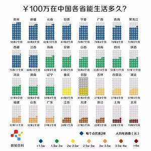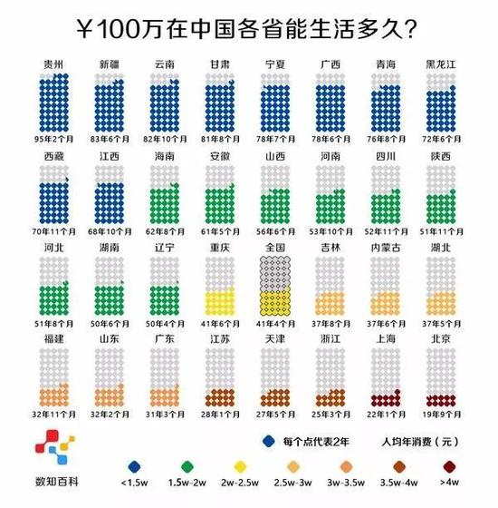 前阵子有一张图很火:100万在中国各省能生活多久。