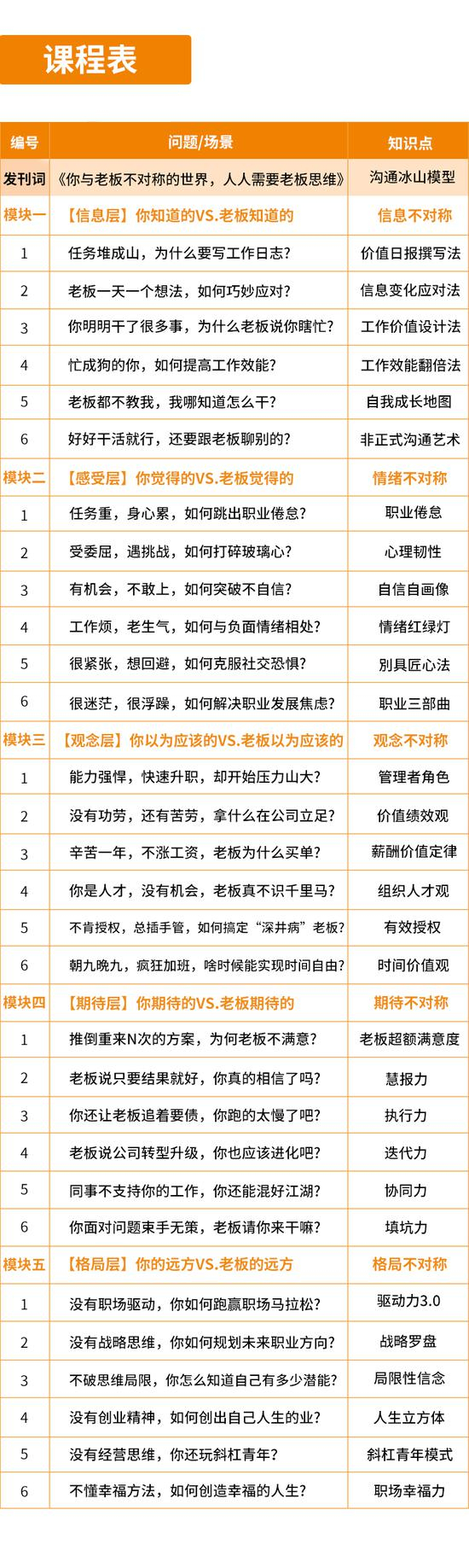 很多职场问题、矛盾的产生,是员工与老板的不对称导致的,不对称主要体现在5个层面:信息、感受、观念、期待、哲学。