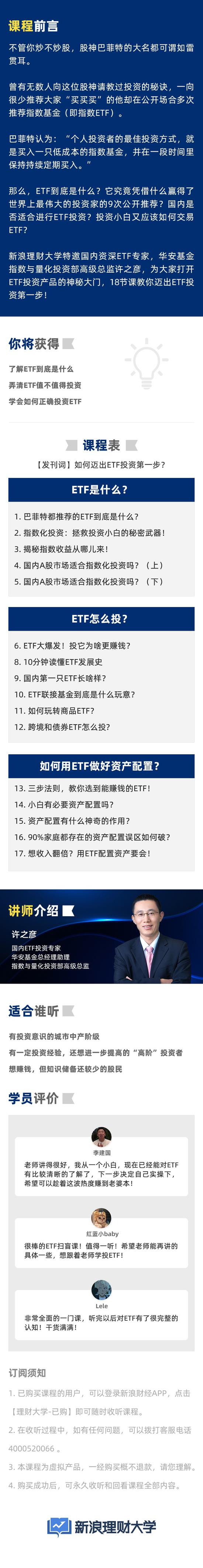 新浪理财大学特邀国内ETF投资专家、华安基金指数与量化投资部高级总监——许之彦老师,开讲ETF投资必听课《学会ETF,教你躺着也赚钱》!