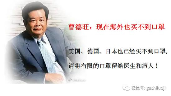 所以曹德旺建议:要把这有限的口罩生产能力,拿去支持医务人员的工作需要,把口罩尽可能的留给医生和病人去戴。