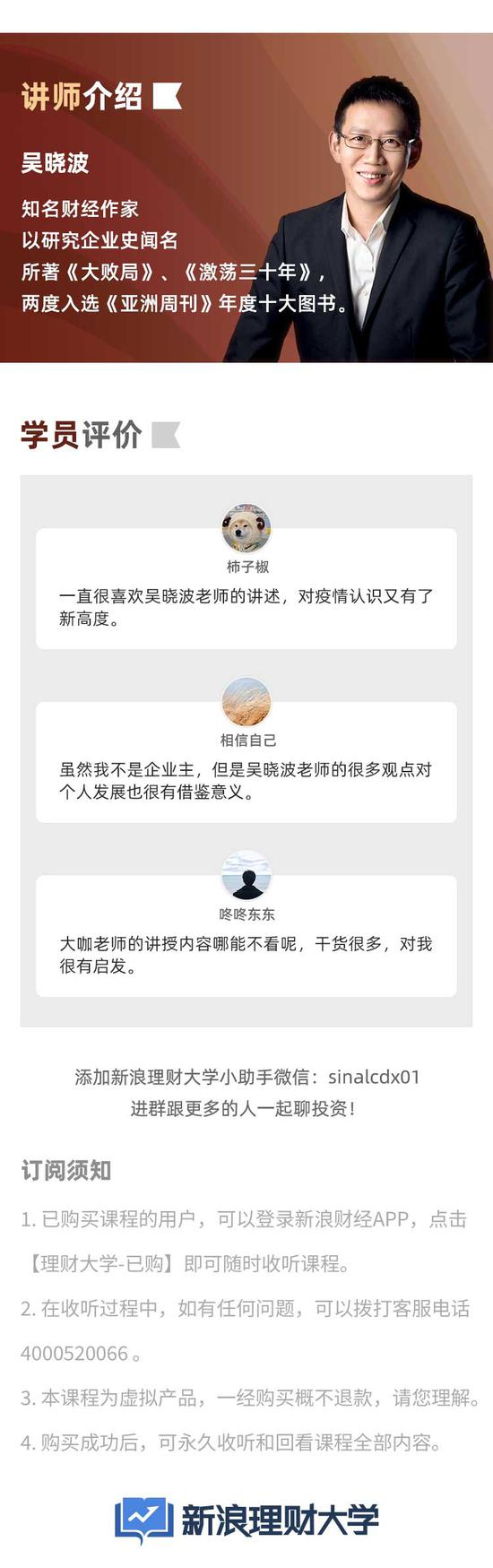 新浪理财大学邀请著名财经作家吴晓波先生,跟大家聊一聊《危机下,企业如何制定自救计划》,5节课带你突破企业的困局!