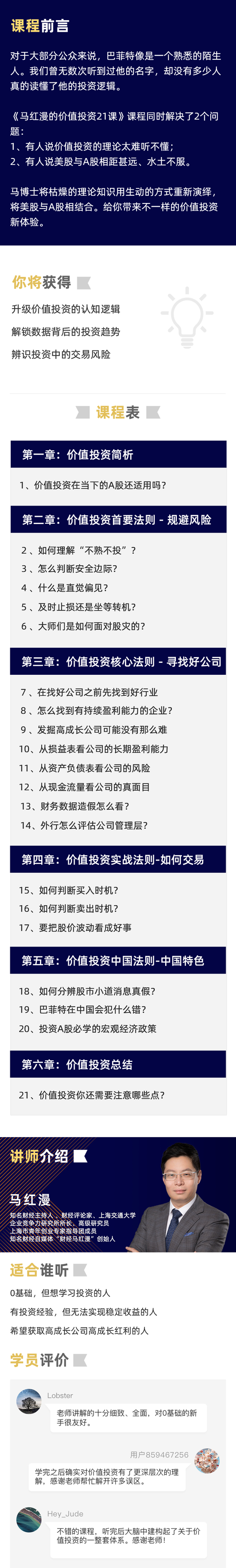 学习完马老师的课程,相信大家会收获不一样的价值投资体验。戳此立即试听!