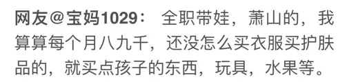 这些还没算上妈妈的个人开支:护肤品、衣服、鞋子、包包等,这些打底消费都要上千元,6000元其实也并不算多。
