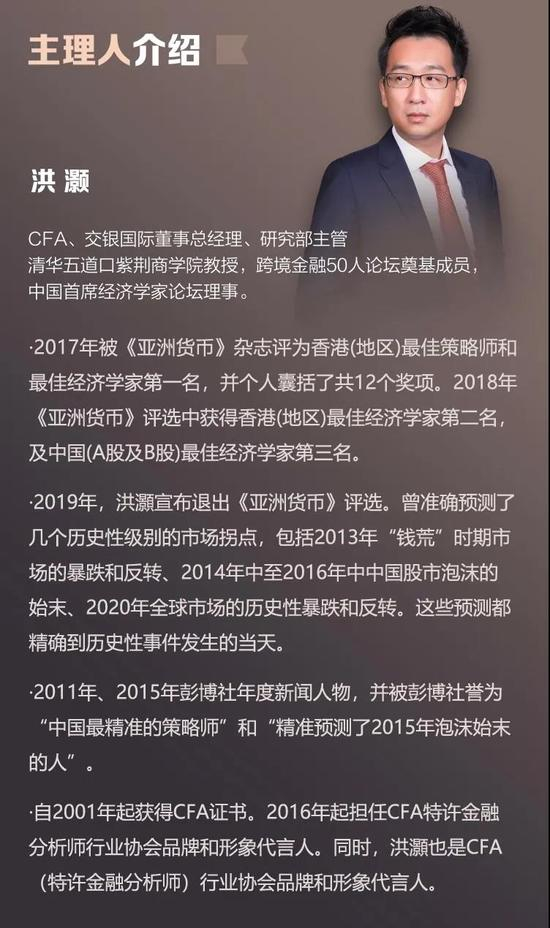 “中国最精准策略师”洪灏带你解读当下全球投资策略!