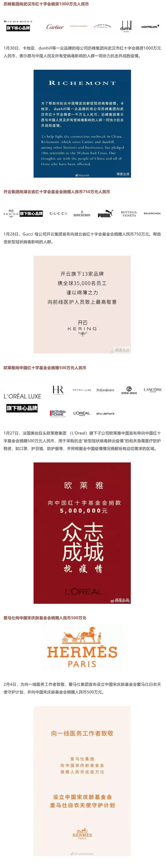13家奢侈品公司捐赠5650万抗击疫情