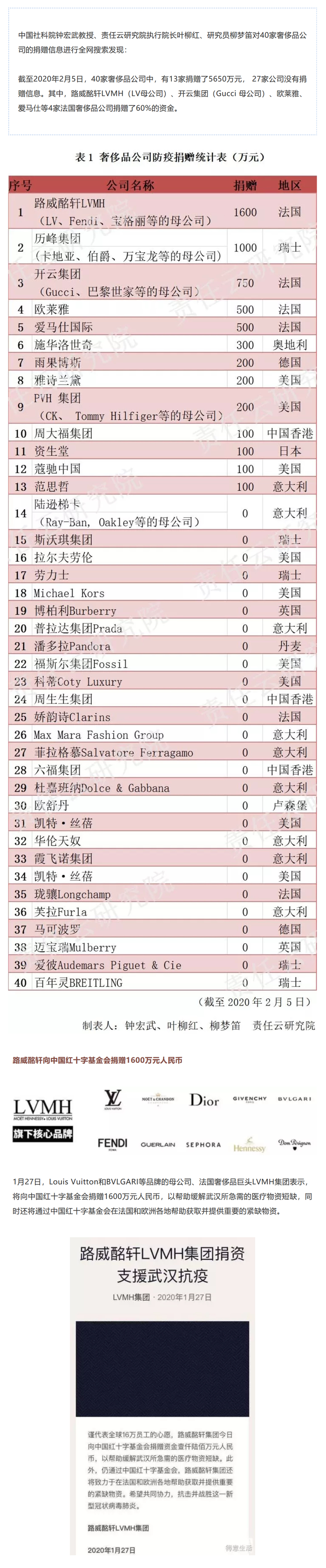 原标题:责任战疫 | LVMH等13家奢侈品公司捐赠5650万抗击疫情,法国公司占60%