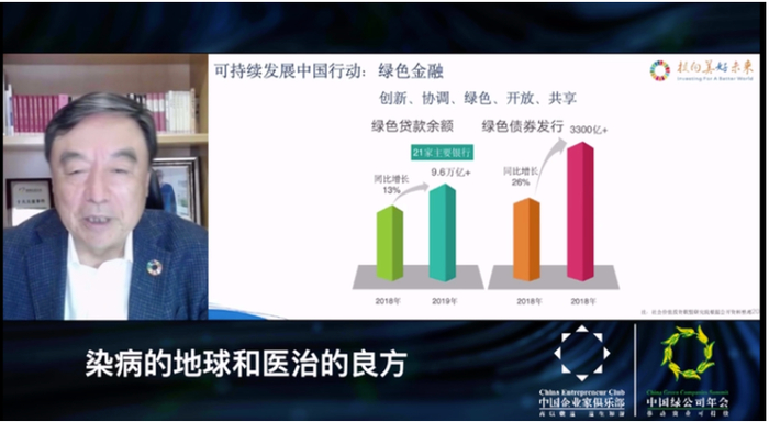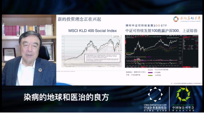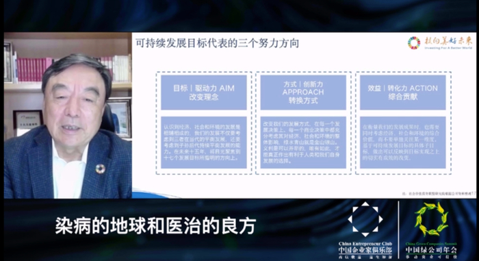 4月7日晚,社会价值投资联盟常务主席、中国企业家俱乐部理事马蔚华先生受邀参加2020中国绿公司年会,与线上超过200万网友直播分享交流其在疫情期间对可持续发展的思考,并作题为“染病的地球和医治的良方”的演讲。