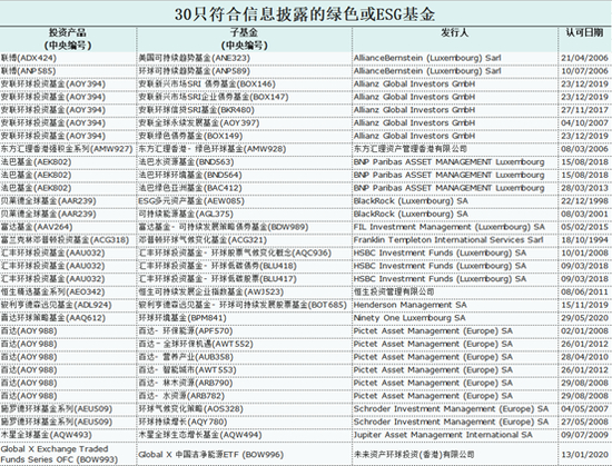 表1 30只符合信息披露的绿色或ESG基金