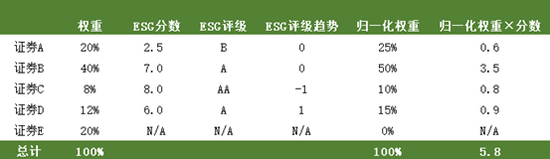 表4 ESG基金质量分数计算步骤一示例