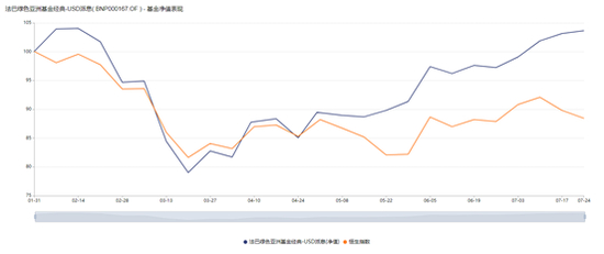 图3 法巴绿色亚洲基金与恒生指数近6月净值表现对比