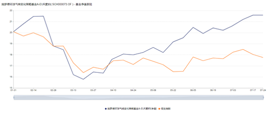 图6 施罗德环球气候变化策略与恒生指数近6月基金净值表现对比