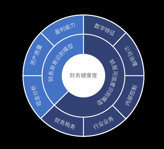 对于财务异常识别模型:首先,下沉到四级行业构建行业图谱,定义行业可比公司与行业财务分析模型,并针对特殊行业画像;其次,从盈利能力、资产质量、现金分析三个层面,对各细分行业分别设置主成分指标、权重、阈值以搭建财务分析框架模型,并结合行业特征进行全样本分析;最后,精准定位企业所处的细分行业,对企业各财务维度及总体健康度进行打分,分为高、中、低三类。