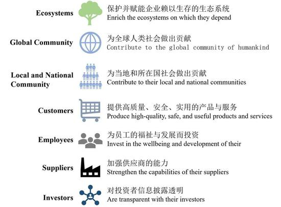 对企业在7类可持续发展相关的特定主题上进行评估是多米尼影响力投资的核心方法,这些主题以利益相关方视角涵盖了:生态系统、全球社会、当地与国家社会、员工、顾客、供应商、投资者。
