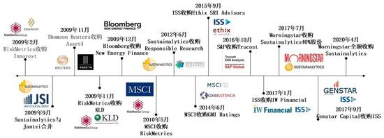 KLD公司的遭遇,是行业剧烈变动时期的一个缩影。在2009年至2020年间,发生了十余起关于ESG评级机构的并购案,而这一过程的最大特征就是传统金融机构收购社会责任或ESG评级机构,例如:晨星收购Sustainalytics,汤森路透通过收购Asset4组建独立ESG评级机构Refinitiv。一方面主流资本市场对ESG投资的认知与实践开始快速上升,但与此同时,ESG投资的重心似乎越来越多地落在了财务回报上。