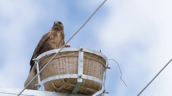 以此为基础,国网青海省电力公司通过使用望远镜、夜视仪、照相机、DV 机观察和拍摄,以及在塔头安装了高清高速全天候摄像机、红外摄像机拍摄等手段观测分析,最后得出最佳方案——使用藤条筐加稻草,制作出一种圆形碗状,直径约1米、深约0.4米的人工鸟窝,安装在鸟类活动频繁区域的输电铁塔的休息平台处供鸟类活动。