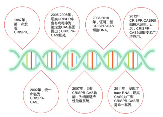 “Clustered Regularly Interspaced Short Palindromic Repeats”。这个词的字面意思是“代表了同一类特征明显、排列整齐、秩序一致的重复序列”。它作为细菌的适应性免疫系统,当外源病毒或质粒DNA进入细胞时,专门的Cas蛋白会将外源DNA剪成小片段,并将它们粘贴到自身的DNA片段中存储。当再次遇到病毒入侵时,细菌能够根据存储的片段识别病毒,将病毒的DNA切断而使之失效。科学家利用CRISPR的这一功能,将其改造成为一种革命性的新型分子工具。由于它具有精准的定位和切割任何种类的遗传物质的能力,使得科学家能够更得心应手地破解地球上任何生物(包括人类)的生命密码。诺贝尔化学奖委员会评价其“这种遗传工具拥有巨大的力量,这影响到我们全人类。它不仅使基础科学发生了革命性变化,而且还将会给未来的医疗健康带来开创性的新方法。”