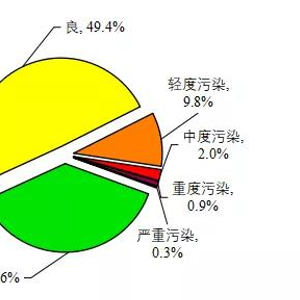 全国337个地级及以上城市平均优良天数比例为87.0%,同比上升5.0个百分点。202个城市环境空气质量达标,占全部地级及以上城市数的59.9%,同比增加45个。PM2.5年均浓度为33微克/立方米,同比下降8.3%;PM10年均浓度为56微克/立方米,同比下降11.1%。