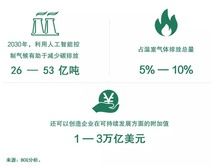 与此同时,BCG研究表明,到2030年,通过增加收入和节约成本等方式,AI之于企业可持续发展的潜在影响价值将达到1.3万亿至2.6万亿美元。AI的强大之处在于它能够从经验中学习,并从环境中收集大量的数据,直观地发现未被注意到的关联,并根据结论给出合适的行动建议。企业若想减少碳足迹,应把人工智能的重点放在以下三个方面: