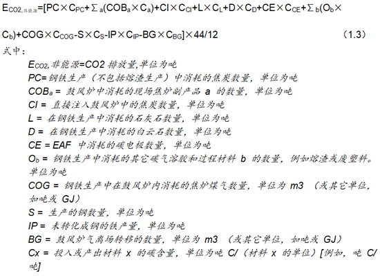 2) 对于过程中的熔渣生产、焦炉、直接还原铁生产的CO2排放不做详细介绍。