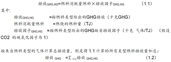 IPCC指南是基于国家或区域边界的碳计量方法类型,计算温室气体排放量的基本方法为缺省方法,基本公式为: