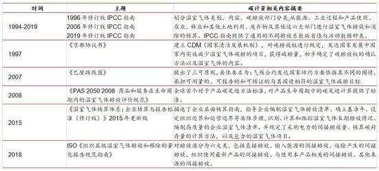 世界气象组织(WMO)与联合国环境规划署(UNEP)在1988年共同组建成立IPCC,IPCC通过IPCC指南为UNFCCC提供国家温室气体清单方法支持,旨在协助全球各国编制完整的国家温室气体排放清单,既能使有较多信息和资源的国家利用更为详细特定国家的碳计量方法,同时保持各国碳计量方法之间的兼容性、可比较性和一致性。IPCC指南最初发布于1996年,包括《1996年国家温室气体清单指南修订本》等三项文件;2006年IPCC指南是目前最新版本,2019年推出“2019年修订版指南”对2006年IPCC指南补充更新后进行共同使用。
