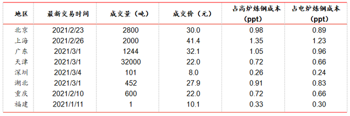 表4-5.八大地区碳交易情况与不同炼钢技术成本