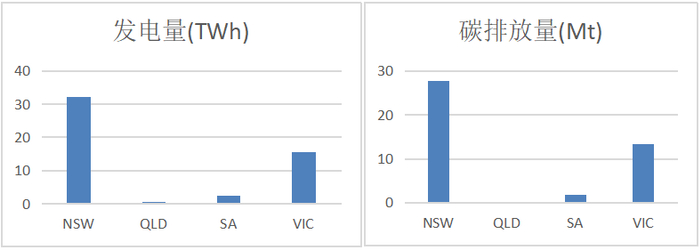 图4-6、4-7和4-8所示,AGL公司主要活动的火力机组集中于新南威尔士州,其次是维多利亚州。图4-9所示,AGL公司的碳排放高峰机组主要集中于新南威尔士州,其次是维多利亚州。值得注意,根据澳大利亚国家能源交易中心(AEMO)的数据,AGL公司在新南威尔士州和维多利亚州的火力机组主要为燃煤机组,其中维州煤机的燃料是热值偏低的褐煤。在昆士兰州和南澳大利亚州,AGL公司的火力机组以燃气和燃油机组居多。