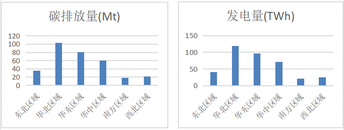 图4-3. 华能集团的火电机组在六大区域2019年碳排放量对比