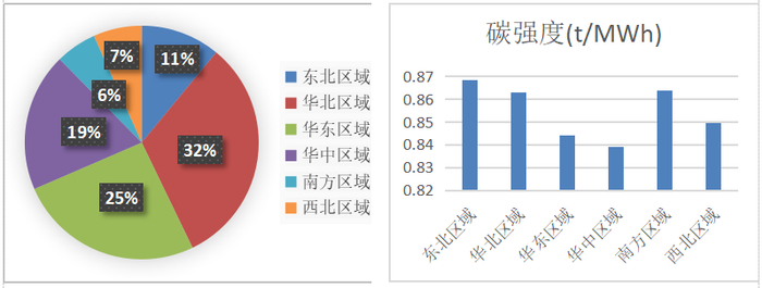 图4-5. 华能集团的火电机组在六大区域2019年碳强度对比