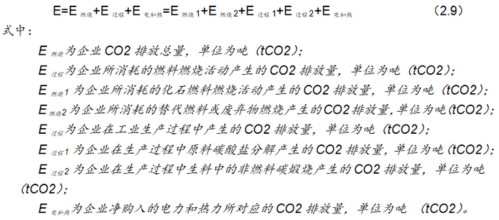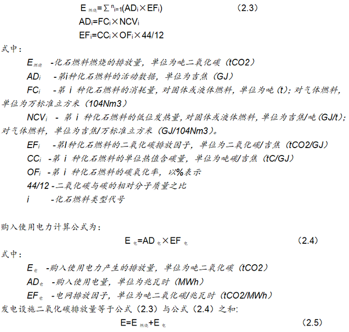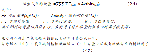 1)在省级温室气体清单编制指南中,发电企业参考以化石燃料燃烧活动二氧化碳直接排放与电力调入调出二氧化碳间接排放量加总来计算全部的碳排放量。计算公式如下: