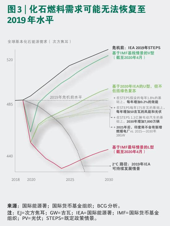 综合这些未来情景,化石燃料需求可能已经达到峰值。如果世界经济不能迅速从危机中复苏,并且持续推行能源转型的举措,那么全球化石燃料需求或在2019年就已经达到了峰值。