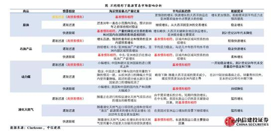 2030年原油在快速脱碳背景下,海运贸易量在达到峰值后会逐渐下滑。动力煤在渐变和快速脱碳背景下也会出现下滑趋势。LNG的确定性较好,无论在哪种情景下,海运贸易量都出现大幅度上涨。