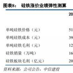 内蒙古十三五的能耗双控效果更差,并且硅铁在钢铁种成本占比更高,因此我们认为相较于山东省控制焦炭产量而言,内蒙控制硅铁产量会更为严格。相关政策一旦得到严格执行,硅铁的价格弹性更甚于焦炭,一旦硅铁产量下降,刚性的下游需求会成为价格上涨的有力支撑。并且硅铁的生产成本相对固定,价格上涨必然加大利润空间。